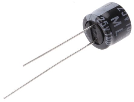 Rubycon 100μF 25V dc Aluminium Electrolytic Capacitor, Through Hole 8 (Dia.) x 7mm +105°C 8mm 3.5mm [25ML100MEFC8X7]; 704-7832