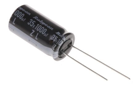 Rubycon 1000μF 35V dc Aluminium Electrolytic Capacitor, Through Hole 12.5 (Dia.) x 25mm +105°C 12.5mm 5mm [35ZL1000MEFC12.5X25]; 703-7315