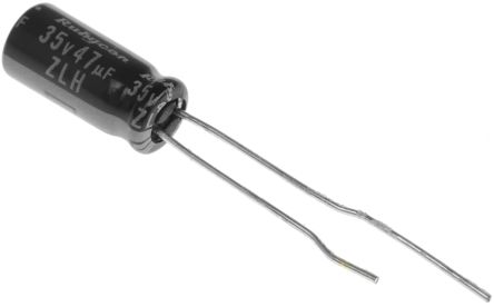 Rubycon 47μF 35V dc Aluminium Electrolytic Capacitor, Through Hole 5 (Dia.) x 11mm +105°C 5mm 7.5mm [35ZLH47MEFCT5X11]; 172-7932