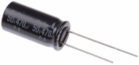 Rubycon 470μF 50V dc Aluminium Electrolytic Capacitor, Through Hole 10 (Dia.) x 20mm +85°C 10mm 5mm [50PK470MEFC10X20]; 763-9478