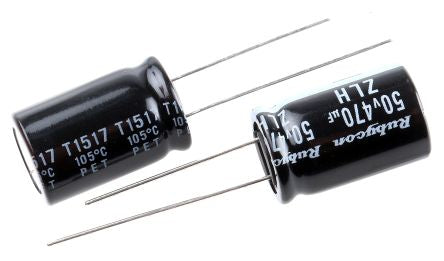 Rubycon 470μF 50V dc Aluminium Electrolytic Capacitor, Through Hole 12.5 (Dia.) x 20mm +105°C 12.5mm 5mm [50ZLH470MEFC12.5X20]; 172-8041
