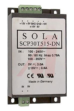 SolaHD, SCP DIN Rail Power Supply, 5 V dc, ±15 V dc Output Voltage, 3 A, 500 mA Output Current [SCP30T515-DN]; 890-8946