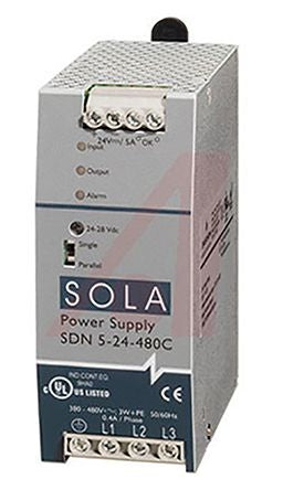 SolaHD, SDN-C DIN Rail Power Supply, 24V dc Output Voltage, 5A Output Current [SDN5-24-480C]; 891-3547