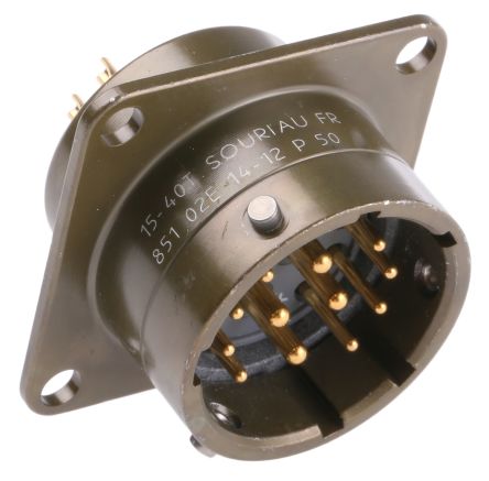 Souriau 851 Series, 12 Way Panel Mount MIL Spec Circular Connector Receptacle, Pin Contacts,Shell Size 14 [851-02E-14-12P-50]; 129-8725