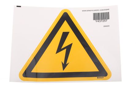 Brady 1 x Electricity Danger Label, Black/Yellow Self-Adhesive PET [None]; 179-2738