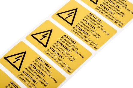 Idento ESSW19052 5 x Electricity Danger Label (German/English/French), Yellow Self-Adhesive PVC [ESSW19052]; 365-5675