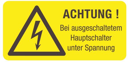 Text Message | ACHTUNG! Bei ausgeschaltetem Hauptschalter unter Spannung! |