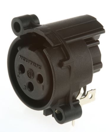 Neutrik 3 Way Right Angle PCB Mount XLR Connector, Female, Gold Cobalt over Enickel Plated Contacts, 50 V [NC3FAH2-0]; 725-9552