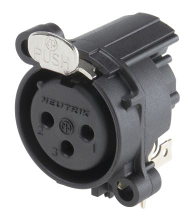 Neutrik 3 Way Right Angle PCB Mount XLR Connector, Female, Gold Cobalt over Enickel Plated Contacts, 50 V [NC3FAH2]; 725-9543