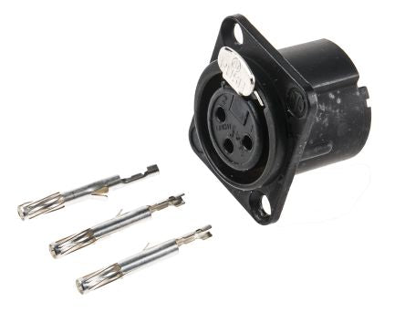 Neutrik 3 Way Panel Mount XLR Connector, Female, Silver over Nickel Plated Contacts, 50 V [NC3FD-LX-HA-BAG]; 694-9421