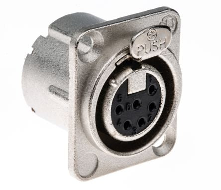 Neutrik 6 Way Panel Mount XLR Connector, Female, Silver over Nickel Plated Contacts, 50 V [NC6FD-LX]; 166-197