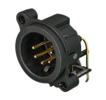 Neutrik 5 Way Right Angle PCB Mount XLR Connectors, Male, Gold Plated Contacts, <50 V ac [RSNC5MAH]; 909-3739