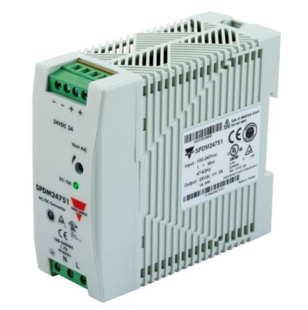 Carlo Gavazzi SP DIN Rail Power Supply 240V ac Input, 24V Output, 3A [SPDM24751]; 222-2918