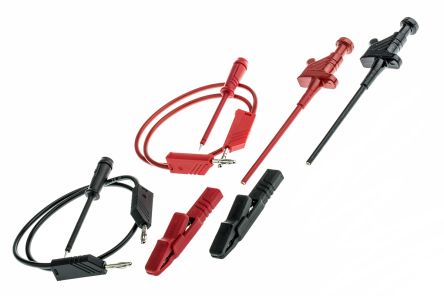 Hirschmann Test Lead Kit with Clamp Style Test Probe, Crocodile Clip, Measuring Lead, Stainless Steel Tipped Test Probe [932794001]; 787-2515