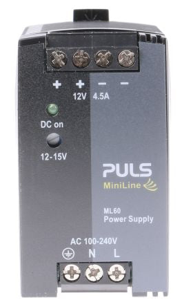 PULS, MiniLine MLY DIN Rail Panel Mount Power Supply, 12V dc Output Voltage, 4.5A Output Current [ML60.121]; 753-1999