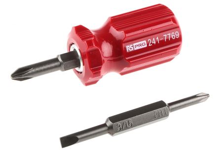 RS PRO Phillips, Slotted Stubby Screwdriver PH1; PH2; Slotted: 1/4 in; 3/16 in Tip; 241-7769