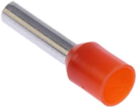RS PRO Insulated Crimp Bootlace Ferrule, 12mm Pin Length, 3.2mm Pin Diameter, 4mm² Wire Size, Orange; 458-730
