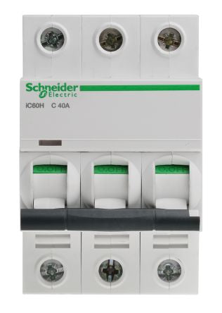 Schneider Electric Acti 9 iC60H MCB Mini Circuit Breaker 3P, 40 A, 10 KA, Curve C [A9F54340]; 791-3408