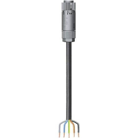Wieland RST Mini Series, Female 5P Pole 1 Way Cable Assembly with a 3m Cable, Cable Mount,with Strain Relief [46.452.3033.6]; 144-3053